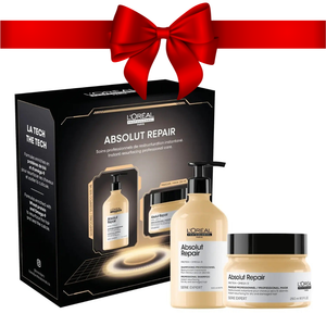 Damaged or dull lengths? This Absolut Repair set helps restore the look of damage, smooth the surface and revive healthy-looking shine with a soft, weightless touch.