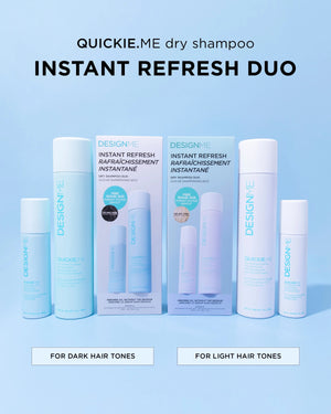 Get refreshed hair at home and on-the-go with the QUICKIE.ME dry shampoo duo, featuring a full size and travel size in one box!
